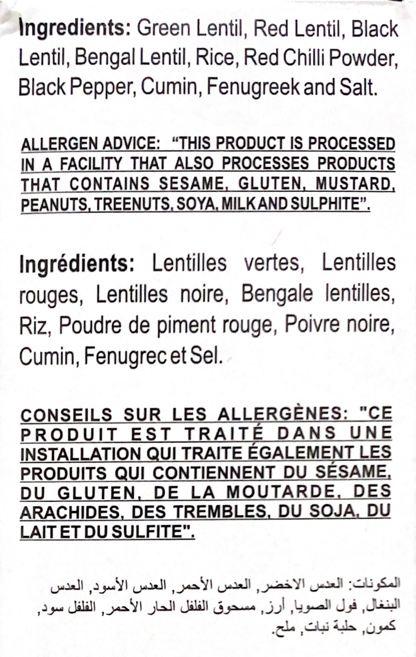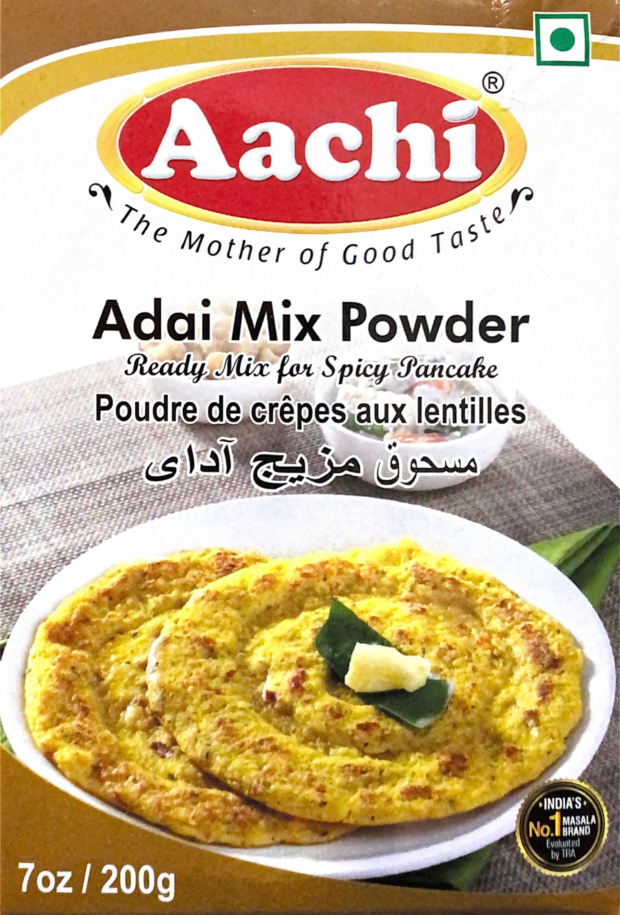 AACHI ADAI MIX is delicious, spicy and health. It contains Greengram Dhal,Toor Dhal, Urid Dhal, Bengalgram Dhal, Soya, Rice, Red Chilli, Pepper, Cumin Seeds, Fenugreek and Salt.