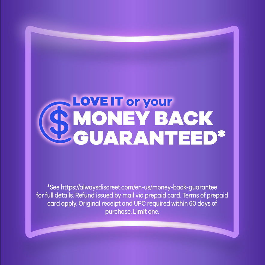 Looking for incredibly strong bladder leak protection that's barely noticeable under clothes? Experience incredible bladder leak and postpartum protection in a surprisingly thin and discreet incontinence pad. Always Discreet Incontinence Pads for Women, Light, 30 Count provide the comfort you need with up to the 100% leak-free protection you deserve. Thanks to a unique absorbent core that keeps your skin dry by absorbing bladder leaks in seconds, you'll be able to stay comfortable and feel fresh for hours. Walk with poise and confidence knowing two Rapid Dry layers form a boosted protection zone in the center of the pad that holds up to 5x the average leak, giving you extra bladder control protection where you need it most. The Leak Guards help keep wetness away from the sides and prevent run-offs at the edges where unexpected leaks tend to occur, while the lightly scented Odor Lock technology neutralizes odors instantly and continuously. Don't let bladder leaks get in the way of your day. Simply find your right size with the Always Discreet My Fit chart and get the bladder control pads for women with protection you can depend on. Incontinence liners, bladder leak pads for women, maxi-pads, and pantiliners are FSA and HSA eligible. Always Discreet Incontinence Pads are available in bulk for added convenience.