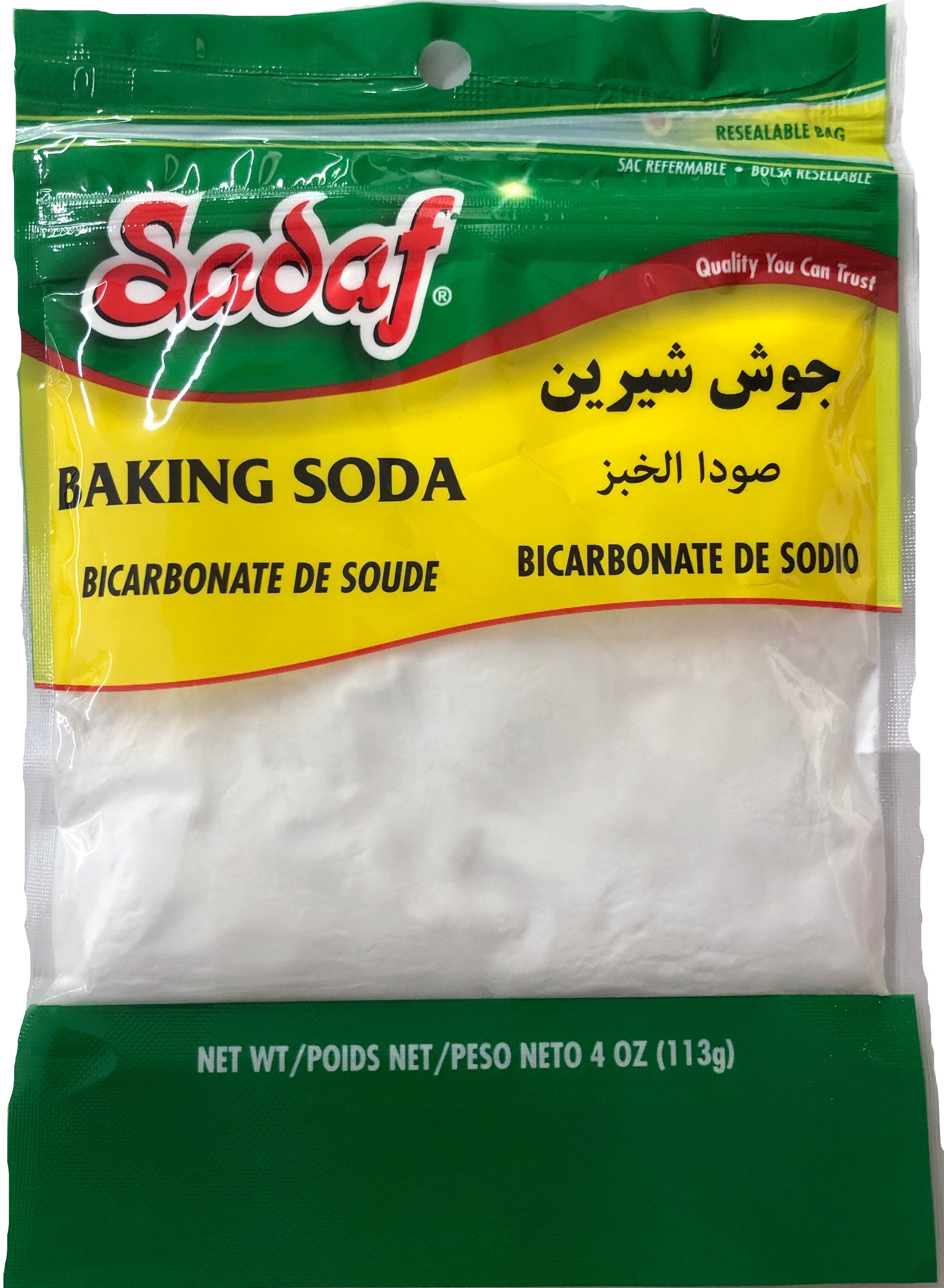 SADAF Baking Soda 4 oz. | Baking Soda is used for baking, household cleaning, & deodorizing. It scrubs away soils and grease, absorbs and eliminates odors on contact.