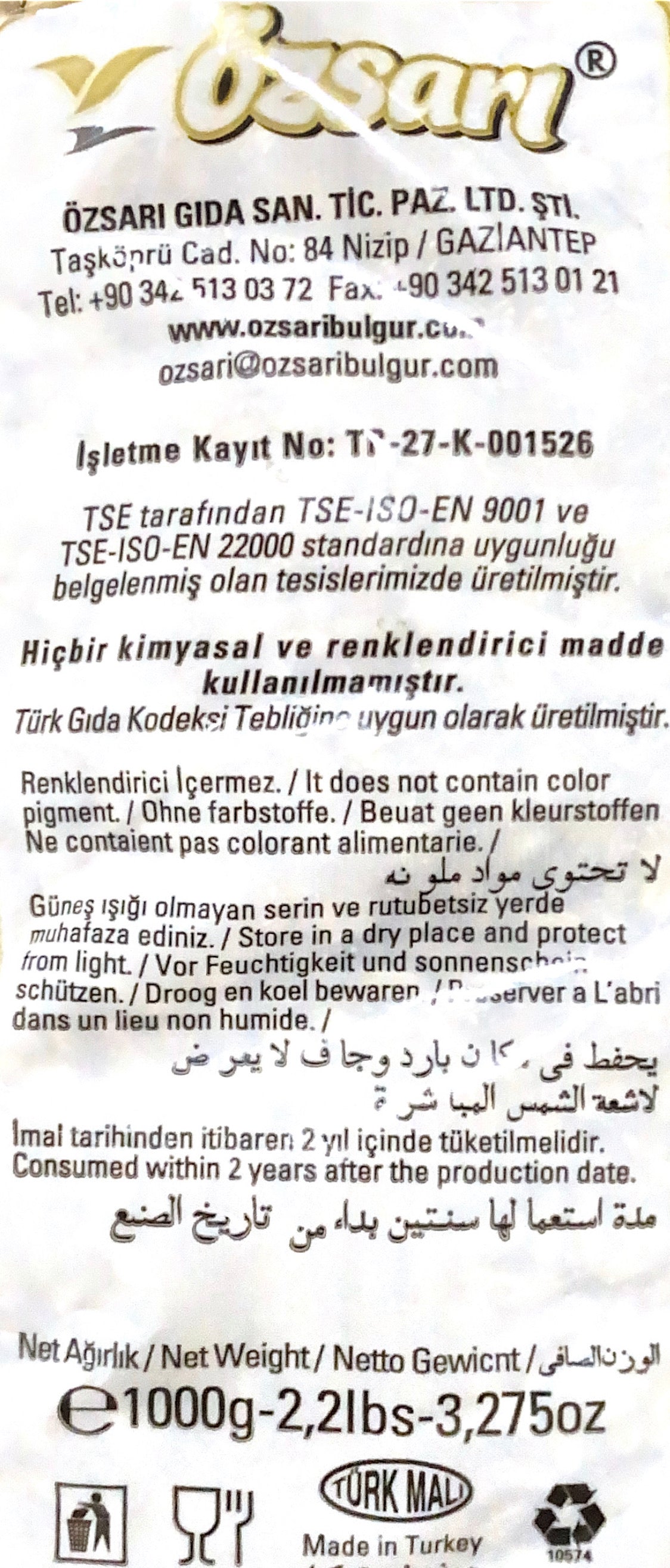 Özsarı Shelled Wheat Coarse Bulgur Produced From %100 Anatolian Hard Durum Wheat and Cracked by stone mills. Due to the quality of the wheat used and cracking by stone mills, our bulgur has a natural golden color and glossary.