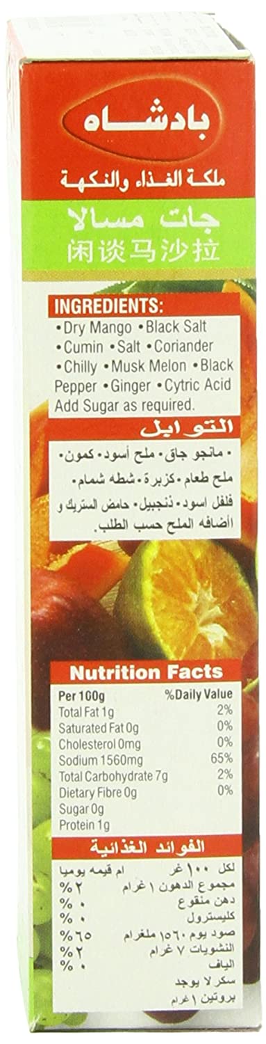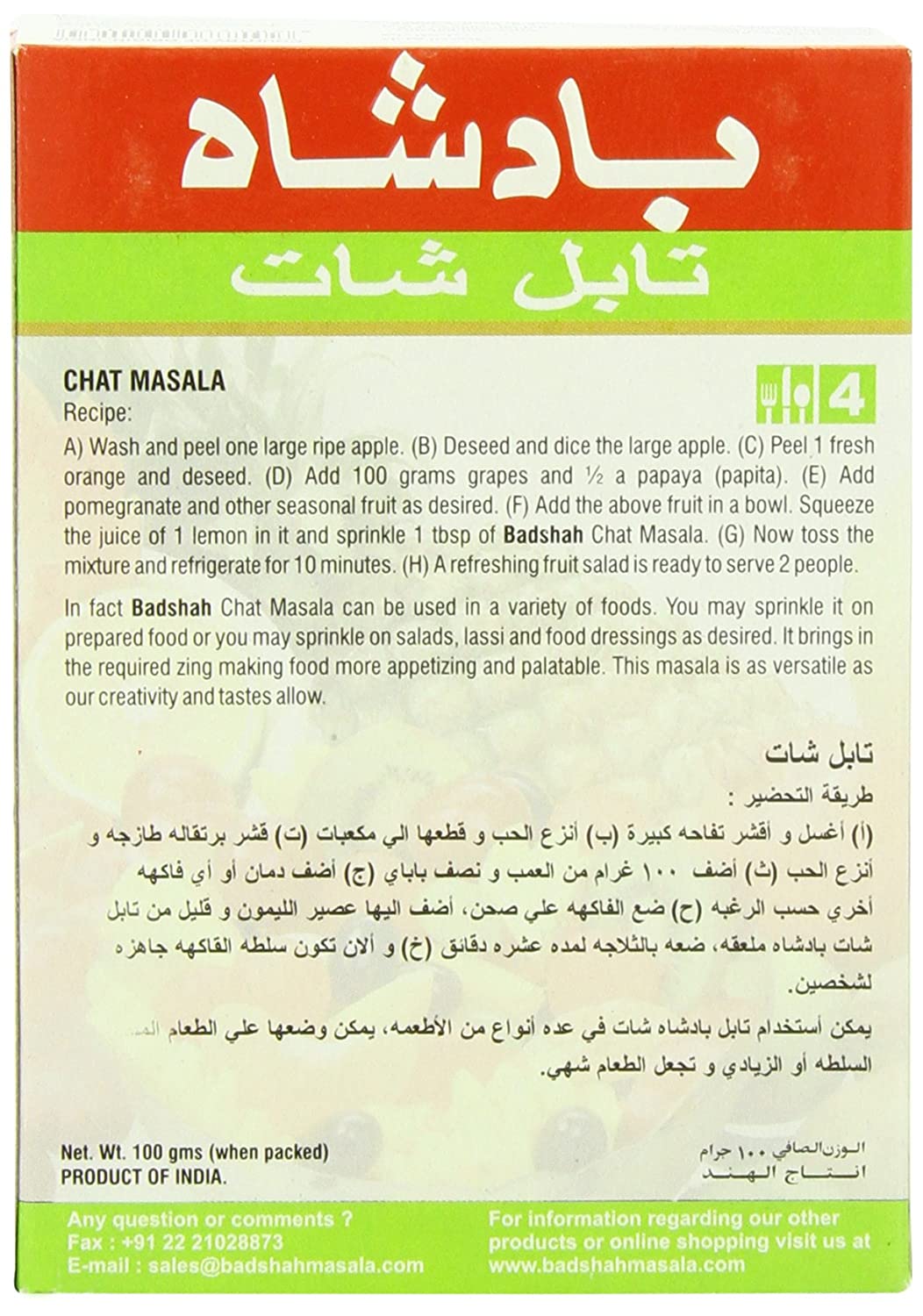 Chaat masala has both a sweet and a sour taste. It is used to flavour fast foods of Pakistan and India like Bhel puri, golgappa (pani puri), Aloo chaat etc. It is a spice that can be added to foods and drinks. Chaat masala is also sprinkled on fruit, egg toasts and regular salads in Pakistan and northern India. Some spice brands market an alternate spice mix called Fruit Chaat Masala.