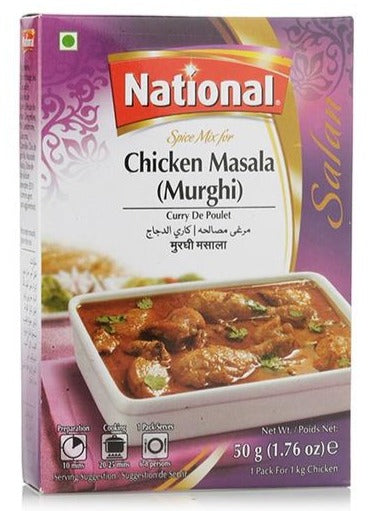Chicken tikka masala is a dish of chunks of roasted marinated chicken in a spiced curry. The curry is usually creamy and orange-coloured.