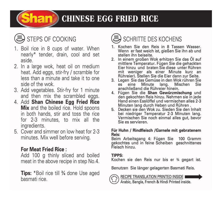 Shan Chinese Egg Fried Rice Mix helps you in preparing the traditional egg fried rice at home with the authentic taste and aroma for an ultimate food experience.
