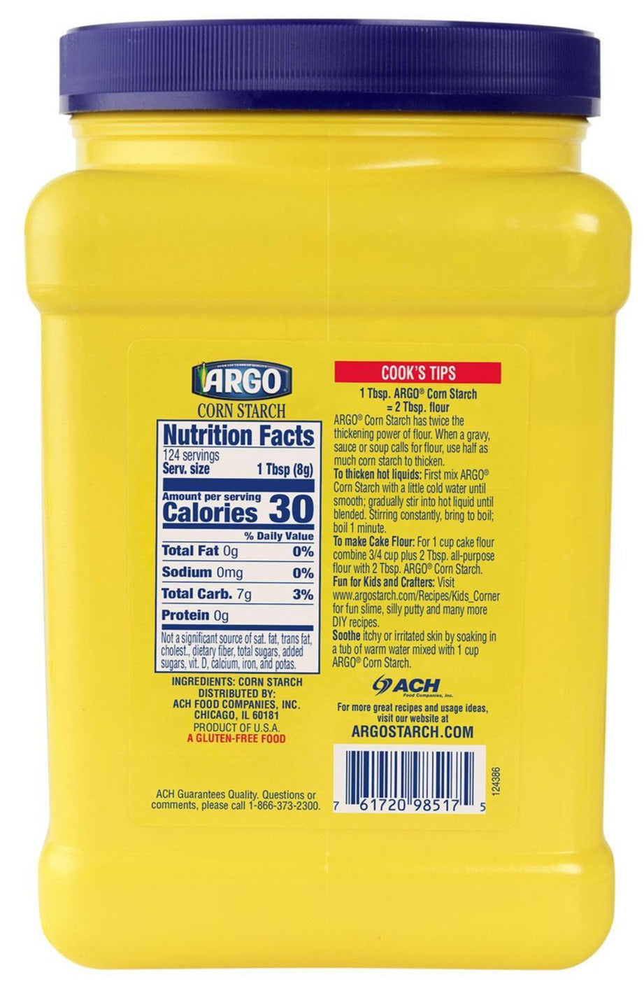 A nearly flavorless thickener, Argo's corn starch allows the natural flavor of the food to come through and has been a trusted name in corn starch for over a century. Corn starch can be used as a thickener for smooth gravies, sauces, glazes and casseroles. It is also a foolproof thickener in pies, puddings, custards and cake fillings. It is also gluten-free, making it the perfect substitute in cooking and baking when flour and other glutinous starches must be avoided.