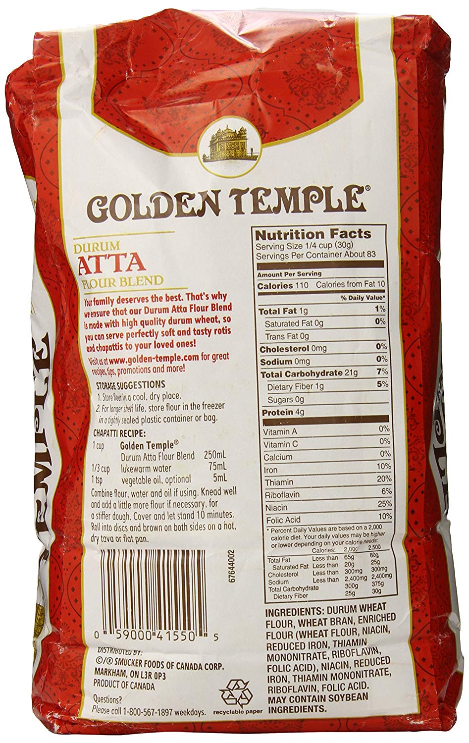 Golden Temple Durum Whole Wheat Atta Flour is a true taste of tradition. It's a good source of fiber. Great for chapatti, paratha, puri and roti. Simply follow the easy directions for delicious chapattis that everyone will love.