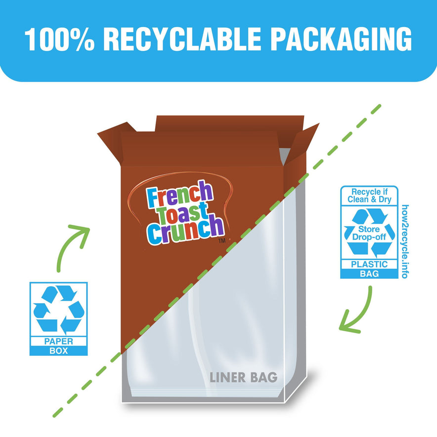 Rise and shine with General Mills French Toast Crunch Breakfast Cereal. These tiny, crunchy French toast flavored cereal pieces are bursting with syrup and cinnamon taste. It's good enough to make you leap out of bed just for a taste. Pour a bowl with milk and leave yourself time to slurp up that delicious cereal milk left over at the bottom of your bowl. Parents like that the first ingredient is whole grains and every serving provides vitamins and minerals as part of an irresistible breakfast. This kids cereal is a favorite with grown ups, too. Enjoy French Toast Crunch cereal any way you like. Sprinkle the crispy French toast flavored cereal over a sundae as ice cream toppings. Nibble from a bowlful as party snacks. Or pack them in your brown bag lunch. This 17.4-ounce Family Size cereal box contains about 13 servings of French Toast Crunch cereal and is an official participating Box Tops product to help support education. Whether you're looking for delicious kids snacks, trail mix ingredients or a cinnamon cereal for the whole family like Cinnamon Toast Crunch cereal, General Mills cereals spread goodness from tots to grown-ups.