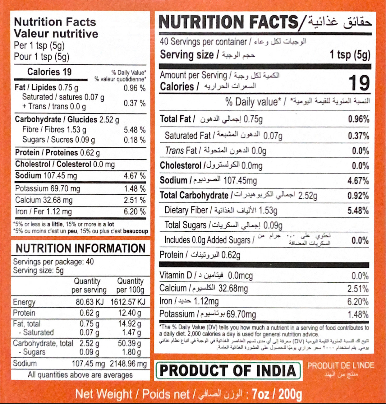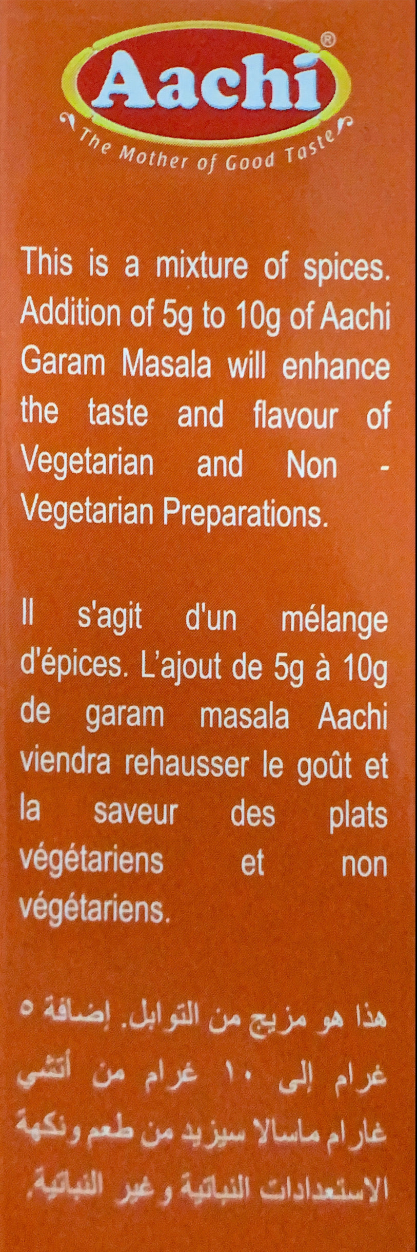 Aachi's Garam Masala is made with natural cardamom, cloves, mace, cinnamon, cumin, fennel, black pepper, and fenugreek. It is a flavorful cooking spice that is used in many traditional Indian Dishes. It is is great on chicken, lamb, potatoes, and breads.