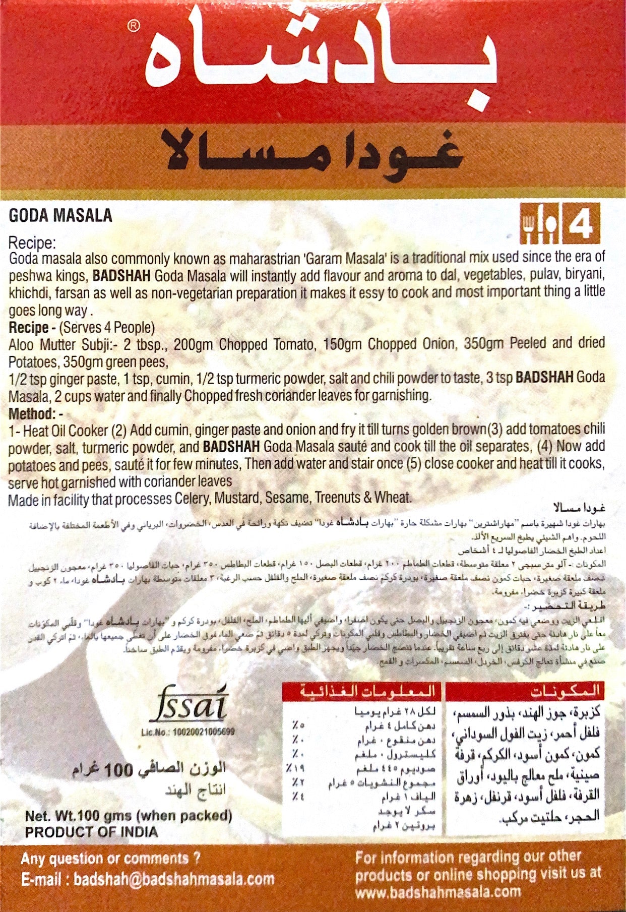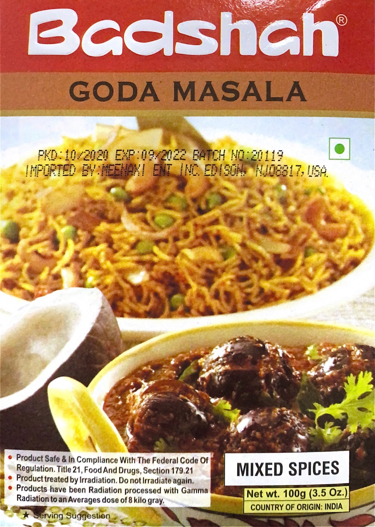 Badshah Goda masala also commonly known as Maharashtrian "Garam Masala" is a traditional mix used since the era of peshwai kings. It will instantly add aroma and flavour to dal, Biryani, Vegetable, Pulav, Farsan as well as non- vegetarian preparation.
