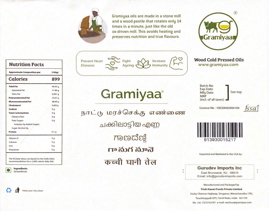 Gramiyaa Wood Cold Pressed Groundnut Oil 1 L