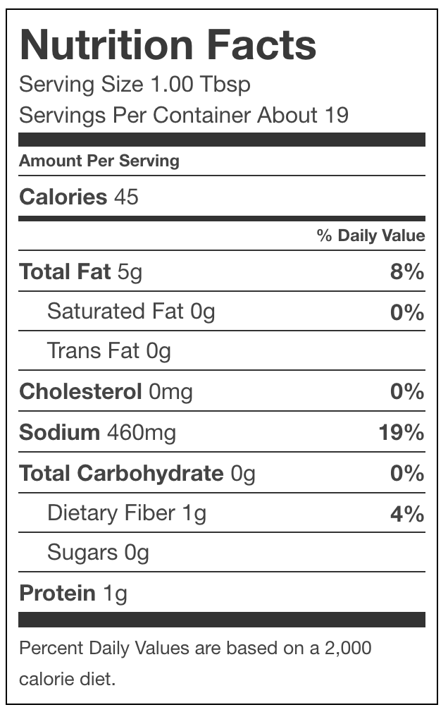 No Artificial favors or colors, Gluten Free, Vegetarian.