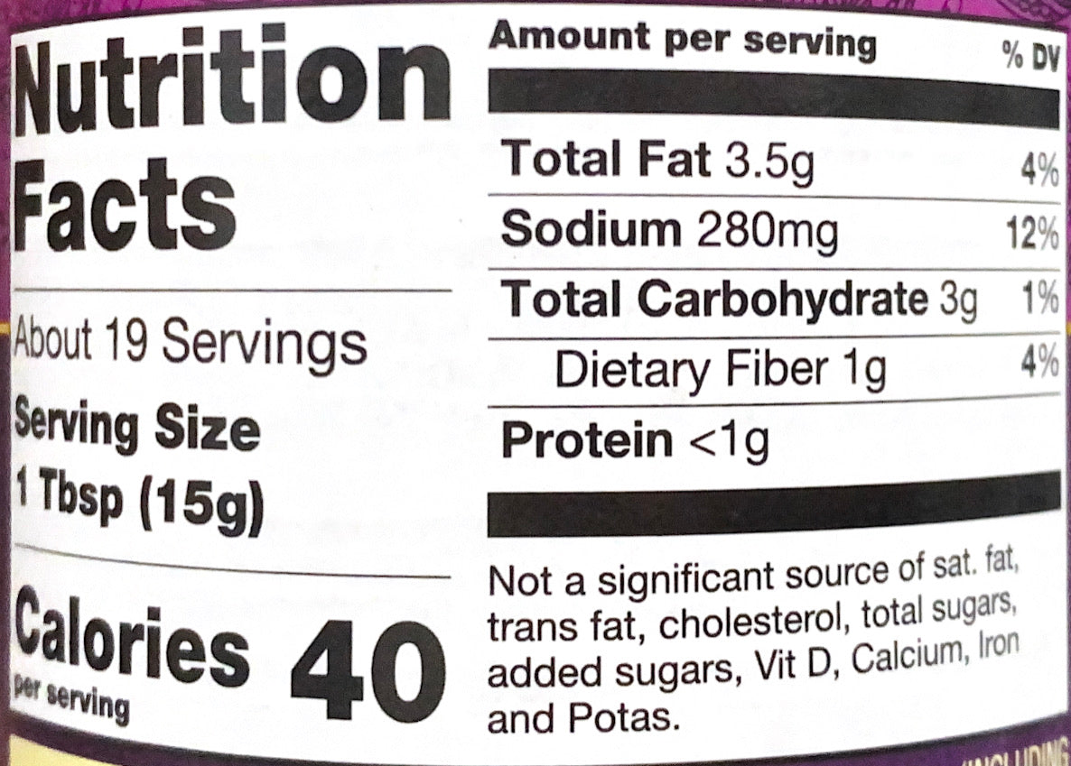 No Artificial flavors or colors, Gluten Free, Vegetarian.