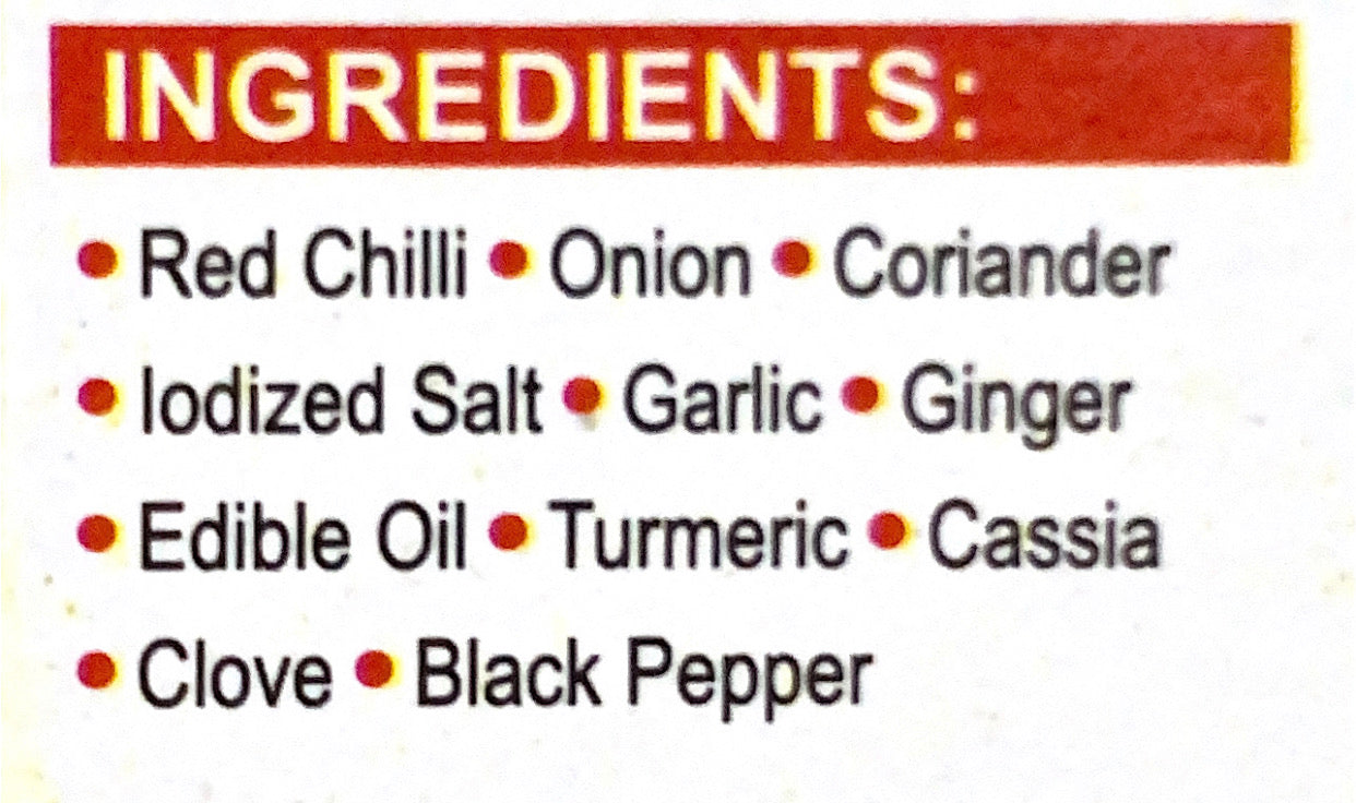 Ingredients: Red Chilli, Coriander Seeds, Cinnamom, Cloves, Cumin Seeds.