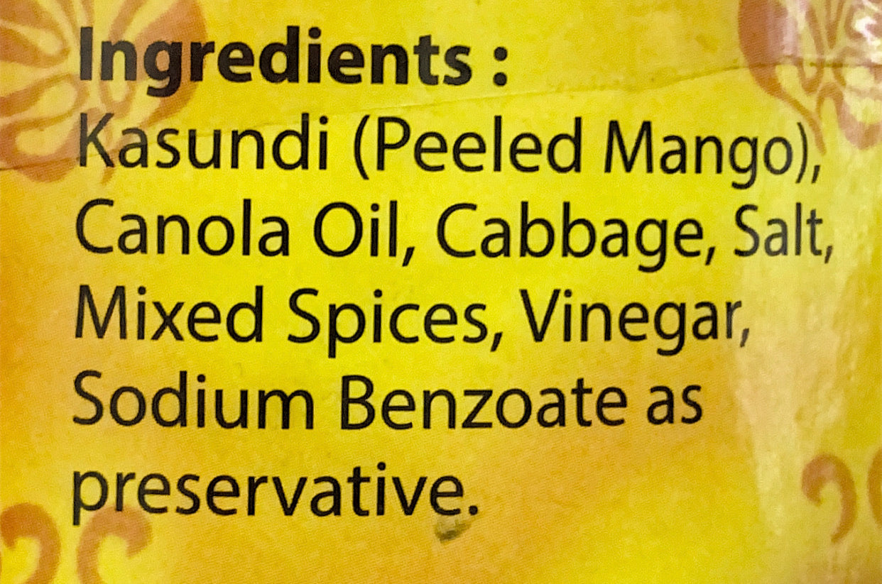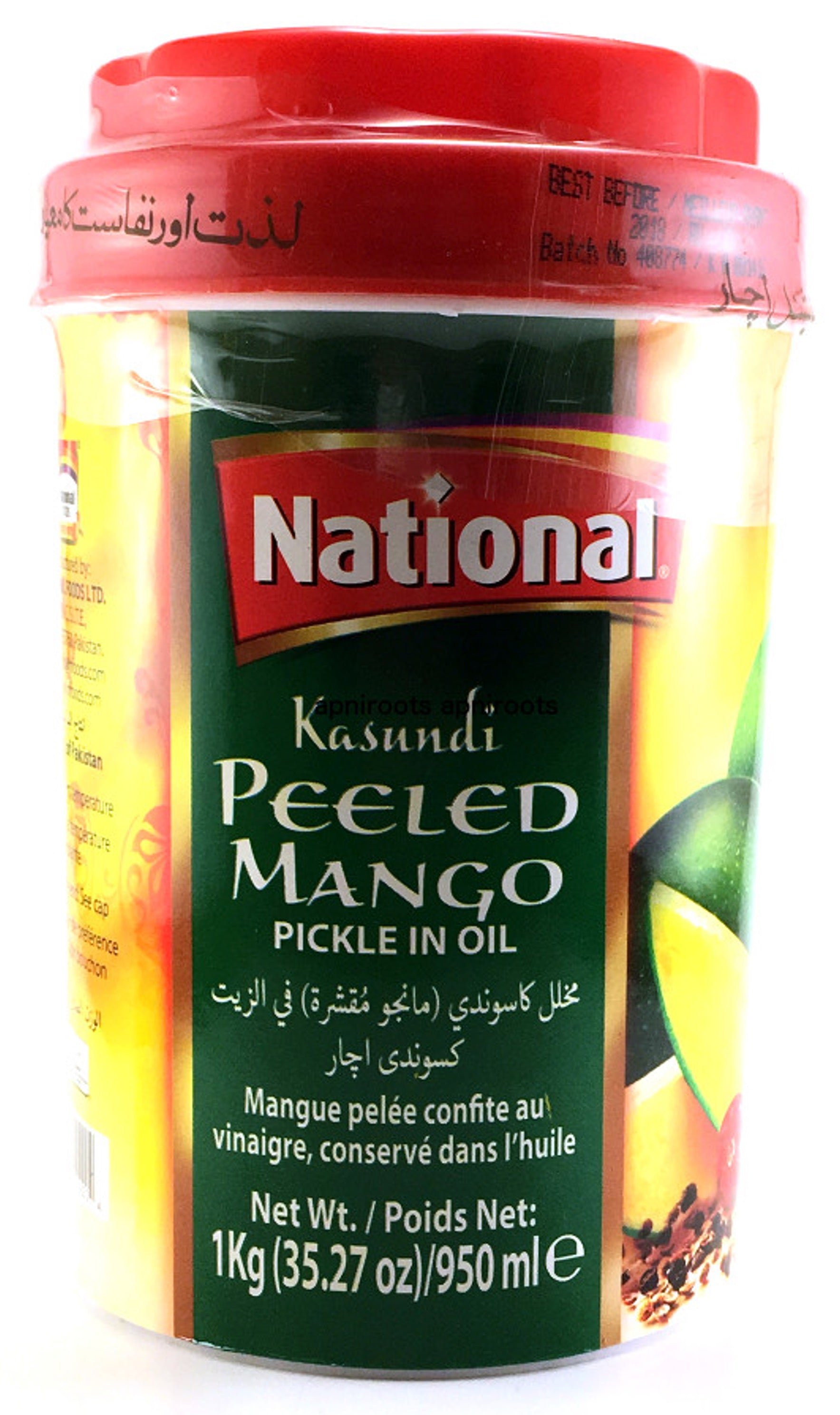 National Kasundi Peeled Mango Pickle in Oil is a mildly spicy pickle which is made from delicious peeled mangoes, vegetables, red chillis, turmeric, aniseed, fenugreek seed and other savory ingredients. This mouth-watering mango pickle will zest up any meal!