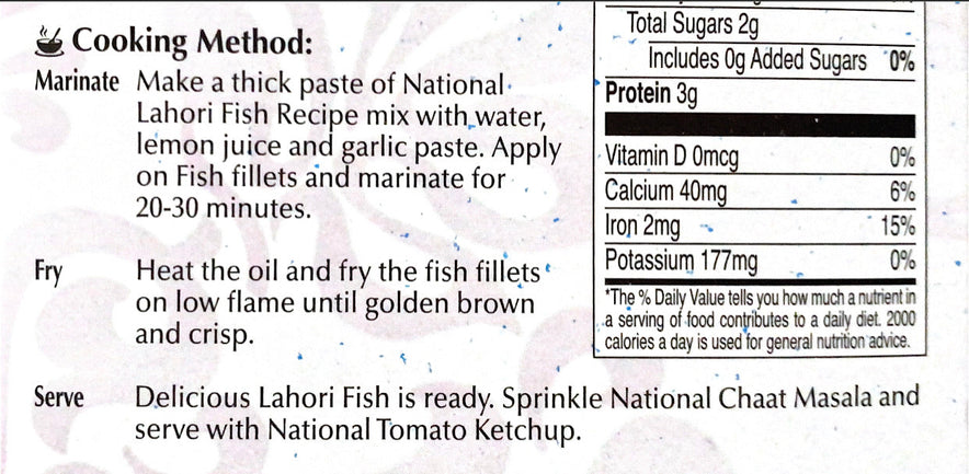National Foods Lahori fish spicy powder which is used to make a Lahori fried fish recipe. The Lahori Fish spicy is easy to make and store for months. It is meticulously selected and combined to ensure the right compounding for perfect results every time.