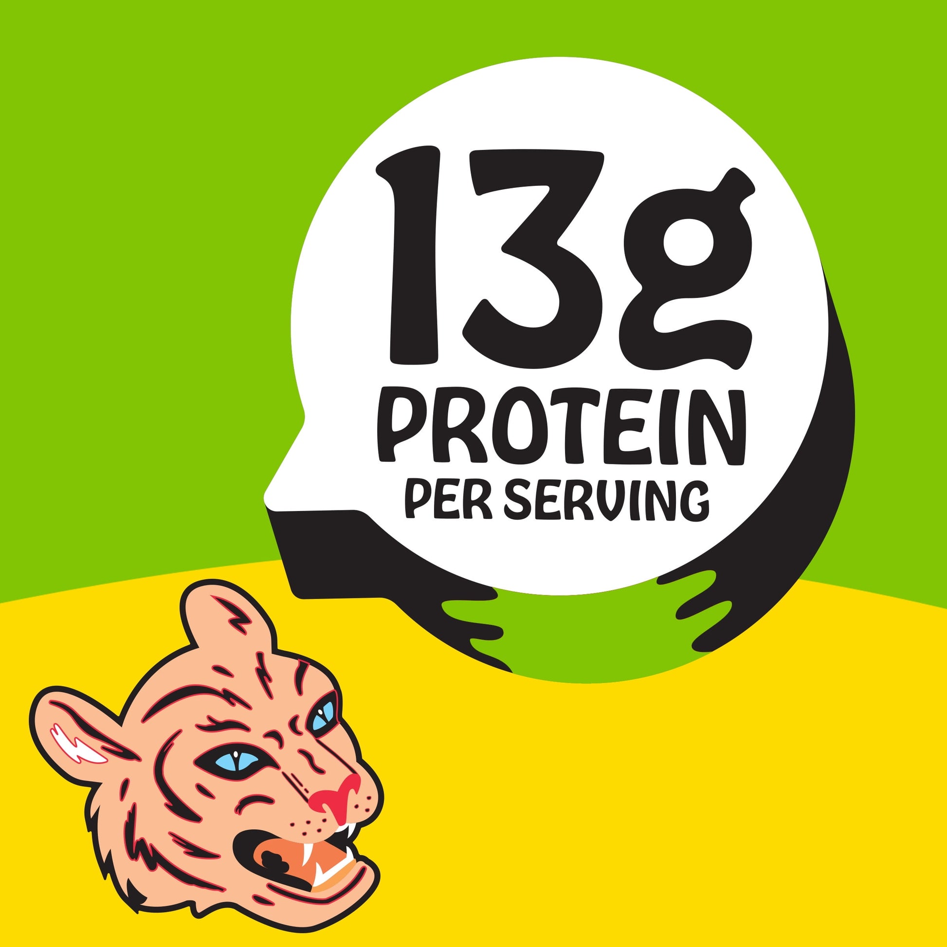 Contains 13 grams of protein and 2 grams of fiber per serving