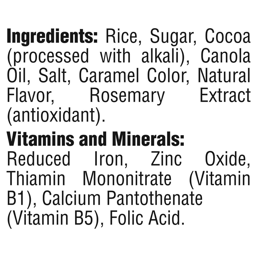 Sweetened cereal rice puff pieces deliver a chocolatey crunch with every delightful spoonful