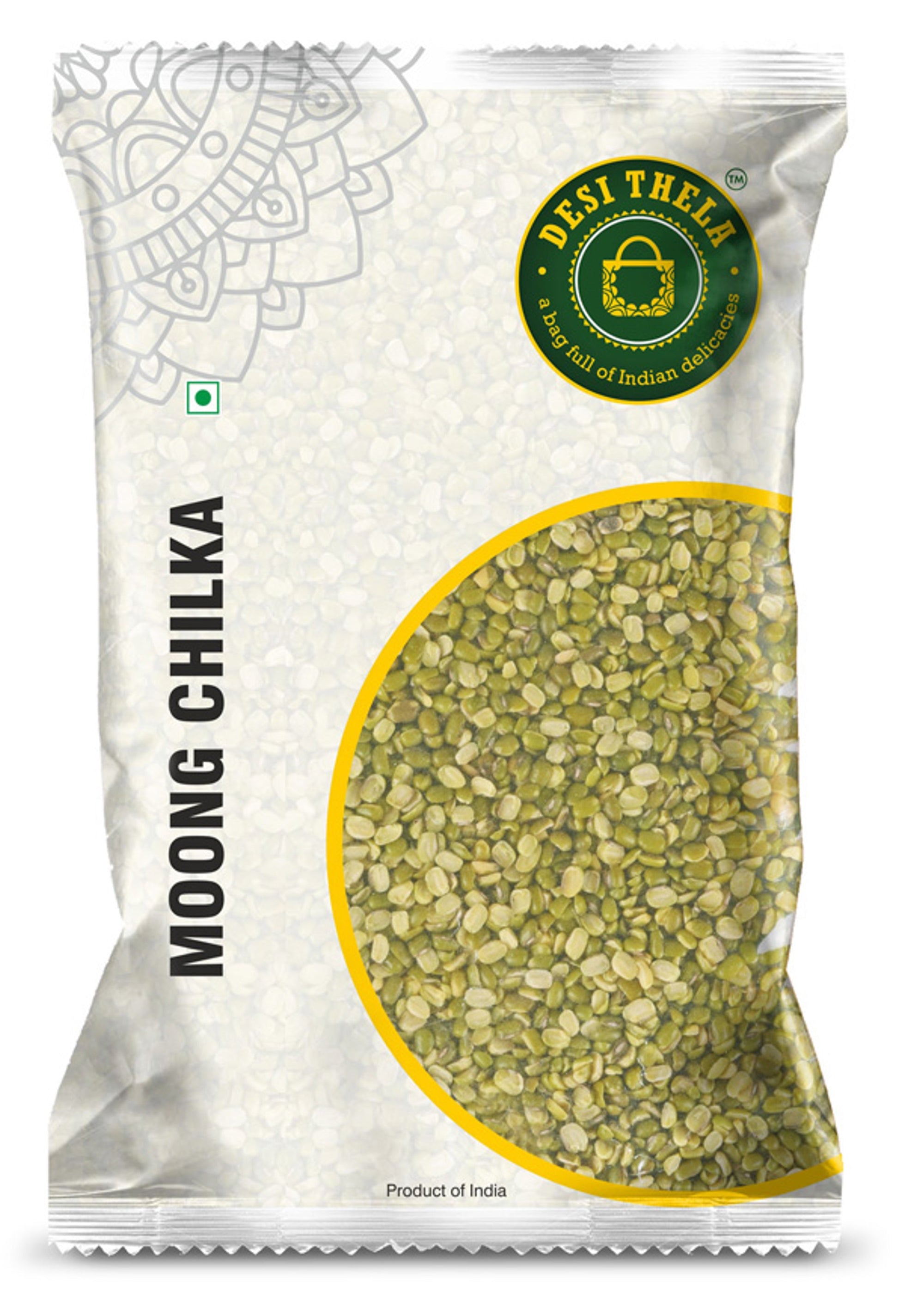 Chilka moong dal is known as split green gram with skin in English. In Gujarati, it is known as fotra wali mag ni dal.