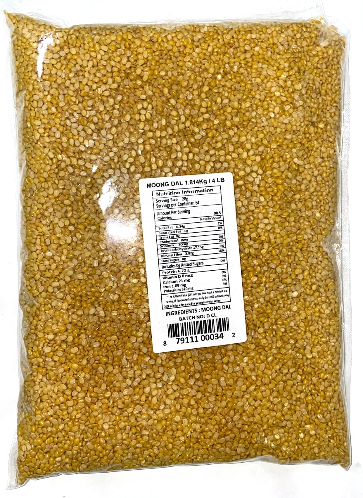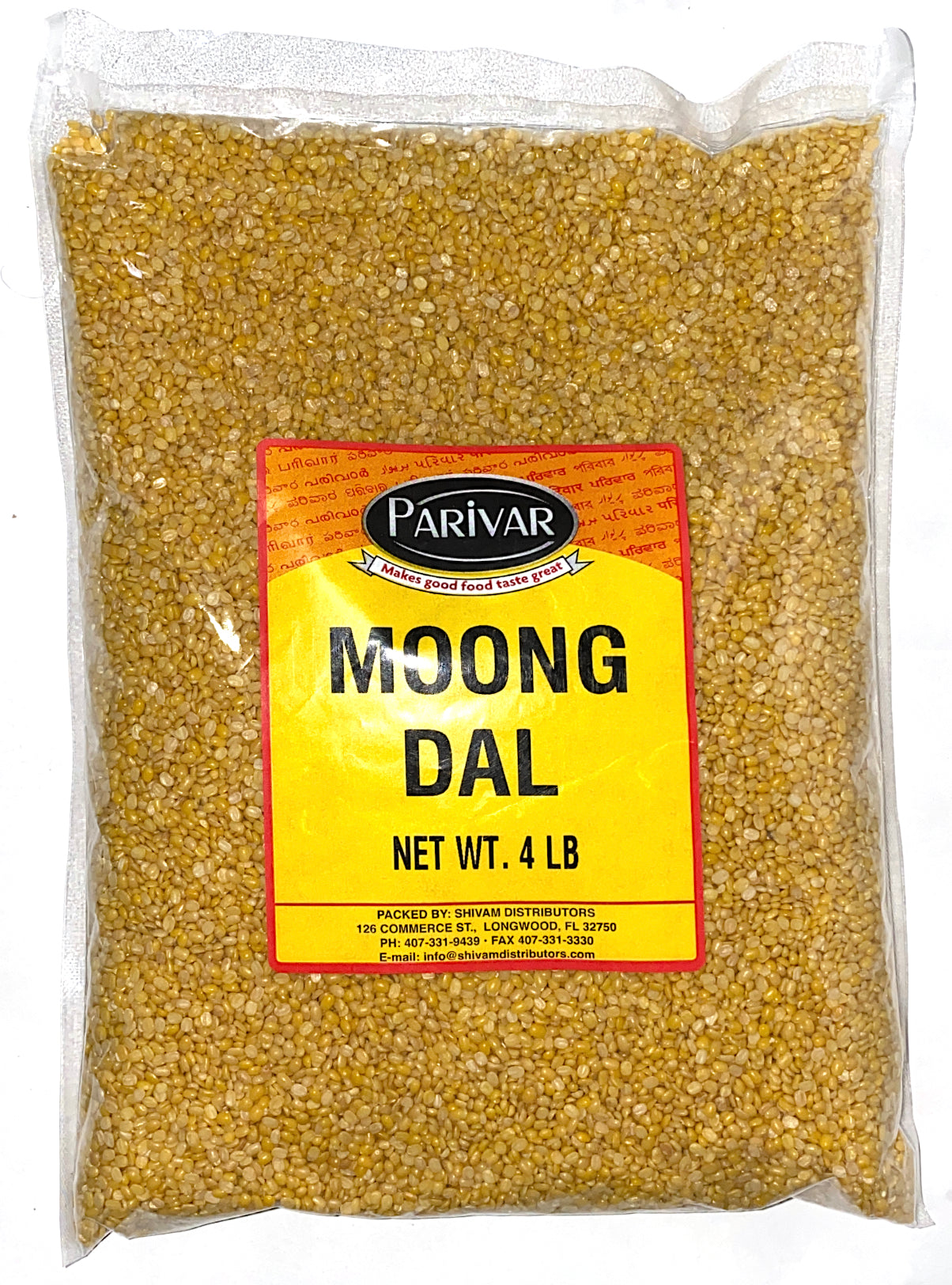 PARIVAR Moong Dal 4 Lb | The word dahl/dal (Pulse/Legume) itself seems to refer to almost any kind of pulse, many of which we have different names for, such as red lentils, puy lentils, chickpeas, split peas, moong beans etc. The generic name for all those in English is "pulses"|Moong dal refers to moong beans that have been skinned and split, so that they're flat, yellow, and quick-cooking. They're relatively easy to digest. Moong dal is low in fat content and very high on protein. In fact, moong dal is considered to be one of the best plant-based sources of protein.