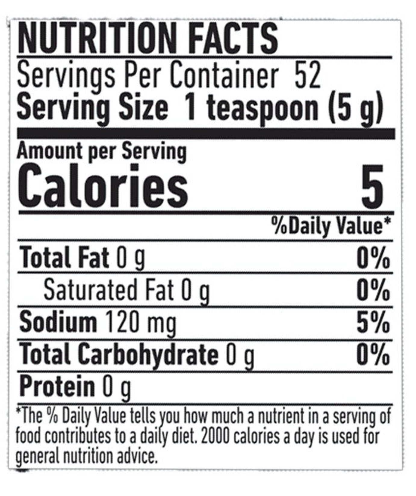 • Ingredients: Water, vinegar, lemon puree 6%, onion puree 6%, salt, spices (cayenne pepper, African bird's eye chili, paprika), green chili, sunflower seed oil, garlic puree, stabilisers (xanthan gum, propylene glycol alginate (derived from seaweed)), preservative (ascorbic acid), rosemary extract.