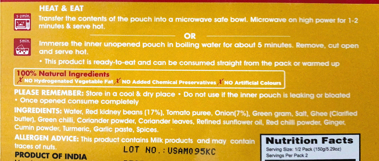 Medium spiced red kidney beans with a tasty gravy straight from the heartland of Punjab, 100% natural ingredients without preservatives. Our range of products cover wide range of delicious North Indian and South Indian recipes, to give you a taste of food which taste just like fresh home cooked food. It is your ready help in kitchen for authentic taste, variety of choices in different Indian cuisines and high on convenience. Our range currently comprises of Soups, Vegetable curries, Paneer gravies and various rice items.