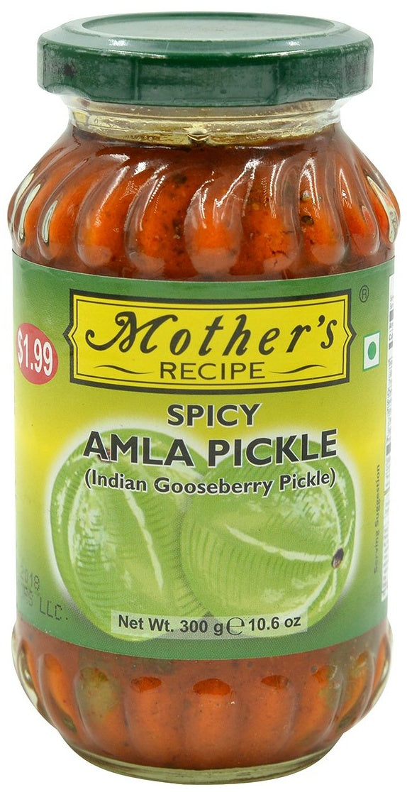 Mother's Recipe Spicy Amla Pickle is made up of Indian Gooseberry (Amla) in south Indian Style and is extremely tasty. Good for health too. Rich source of vitamin C Traditional taste Very delicious Suitable for vegetarians Used finest quality ingredients